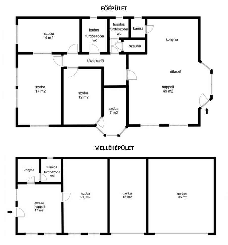 - 3 állásos garázs (18 m2, 36 m2)